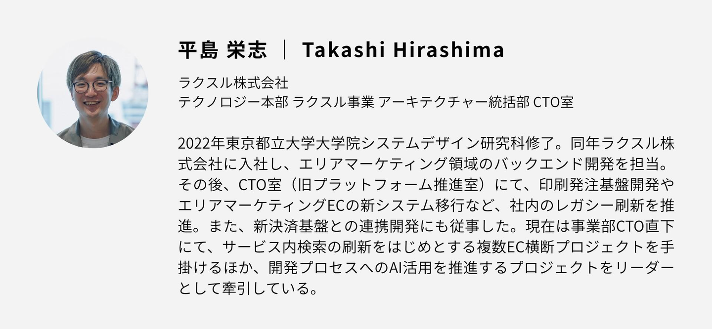新卒1〜2年目でチームリードを任され、今ではCTO室でAI推進をリード。自主開発した社内向け拡張機能で社長賞も受賞した平島さんに、ラクスルを選んだ理由と、4年間の成長ストーリーを聞きました。