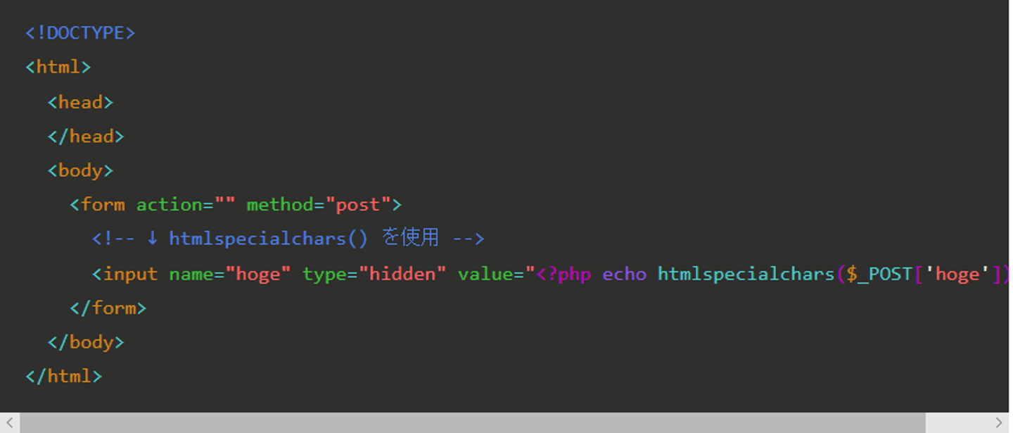 今回の件ではエスケープが漏れていたことが原因なので、エスケープを実施して対処しました。PHPではhtmlspecialchars()