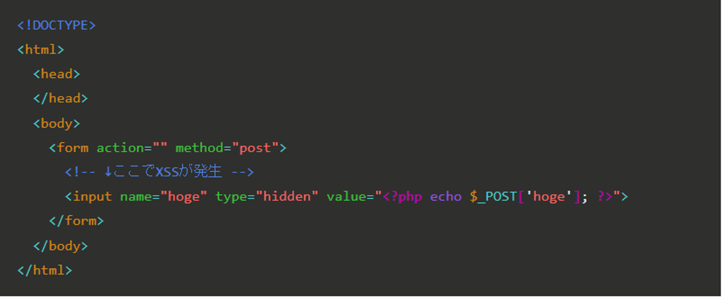 XSSが発生した原因などは次で説明するとして、まずはXSSが発生してしまったソース例を示します。