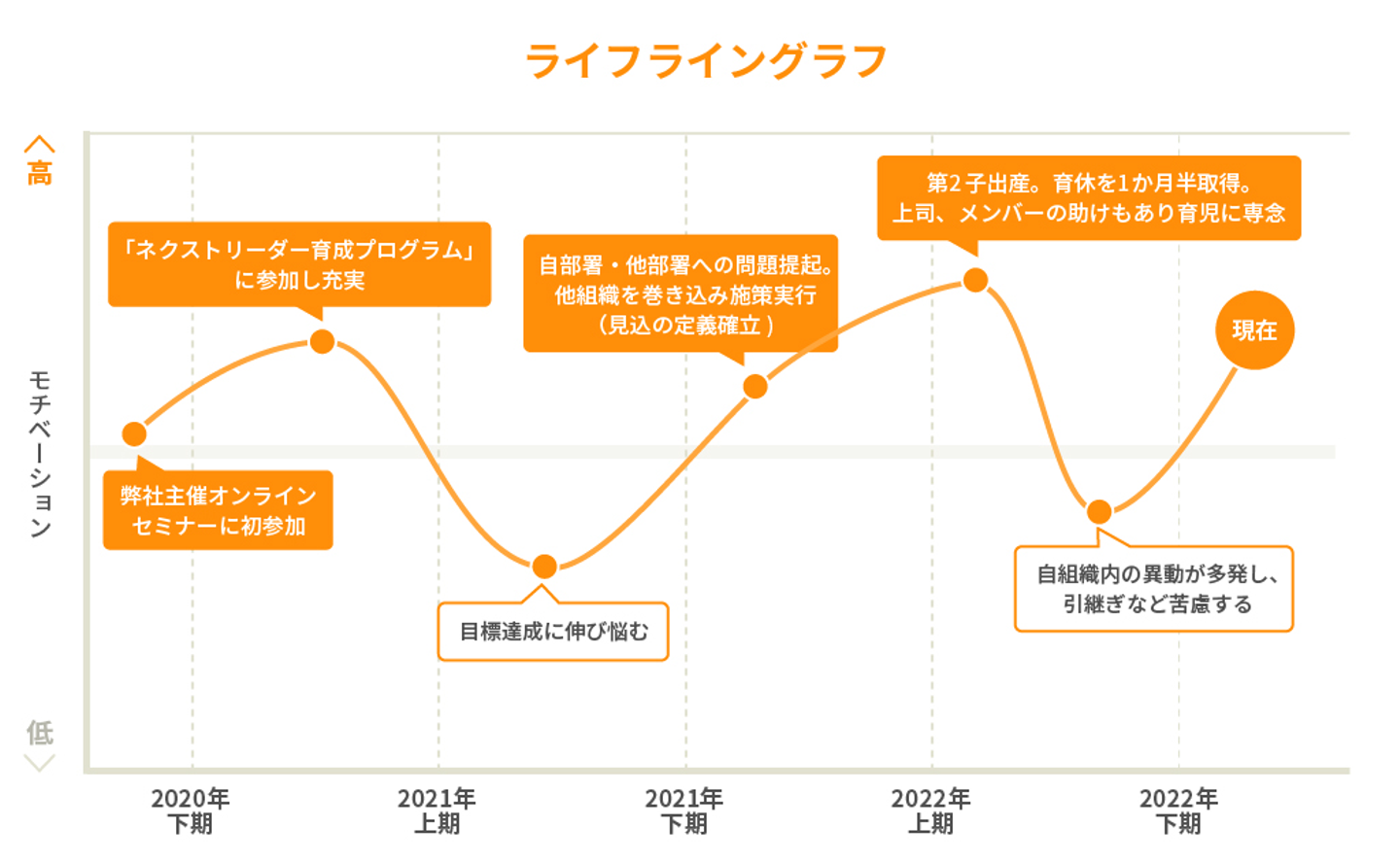 新たな仕組みを入れることで課題を解消し、ライフライングラフは上昇トレンドへ。しかも、仕事で充実感を得ていた頃、私生活ではふたり目のお子さんが誕生したのですね。おめでとうございます!
