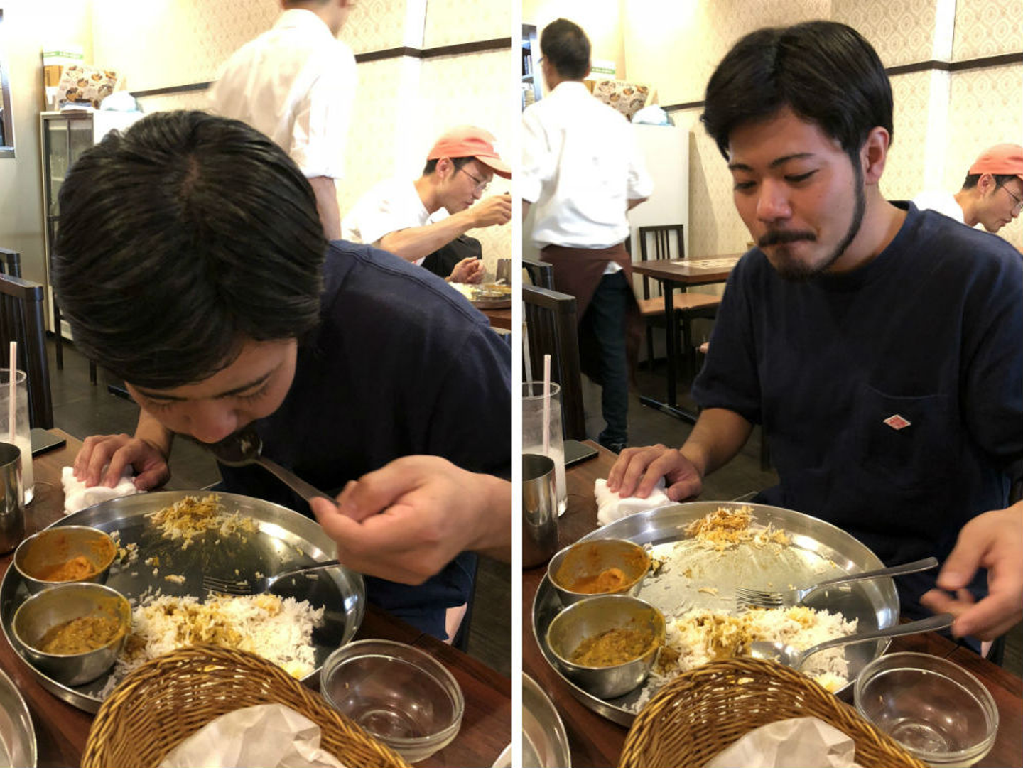 アラブ系に間違われる沖縄出身の山田くんは、辛いものが苦手なのでチキンカレーと豆カレーを頼んでましたが、一番辛くない豆カレーですら「辛くてやばい・・・」とヒーヒー言いながら食べてました。笑