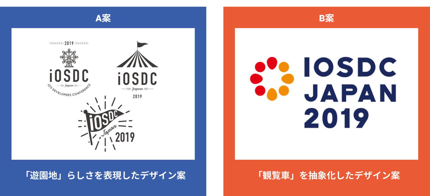 初回提案では、「遊園地」らしさを表現した案と、遊園地の観覧車を抽象化したデザイン案の2パターンを用意し提案を行いました。