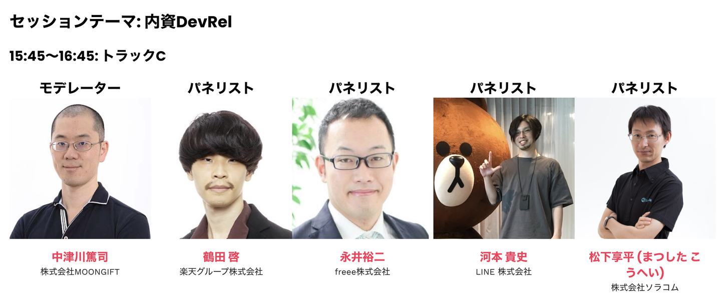 内資DevRel というテーマで国内企業に DevRel 組織をもつ方々とセッションを行う予定です。