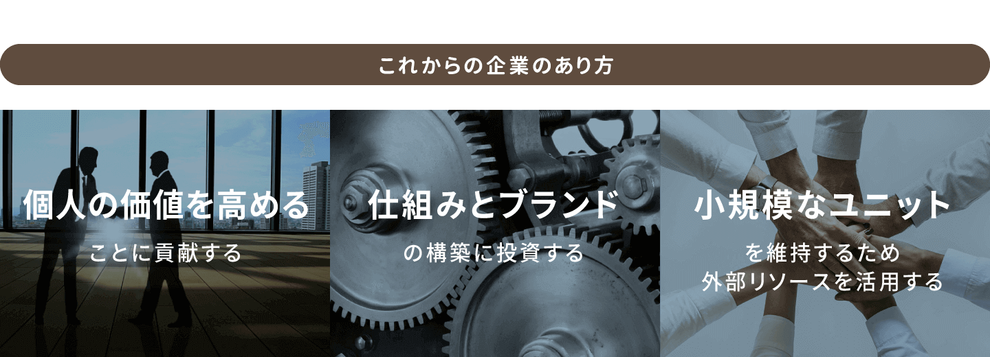 まとめると、企業側としては、今後は「スタッフ個人の活動の価値を認め、むしろそれに貢献する視点を持つこと」「仕組みやブランドの構築に投資すること」「小さいサイズでいながら、必要に応じて外部リソースにアクセスすること」などが重要になると思います。