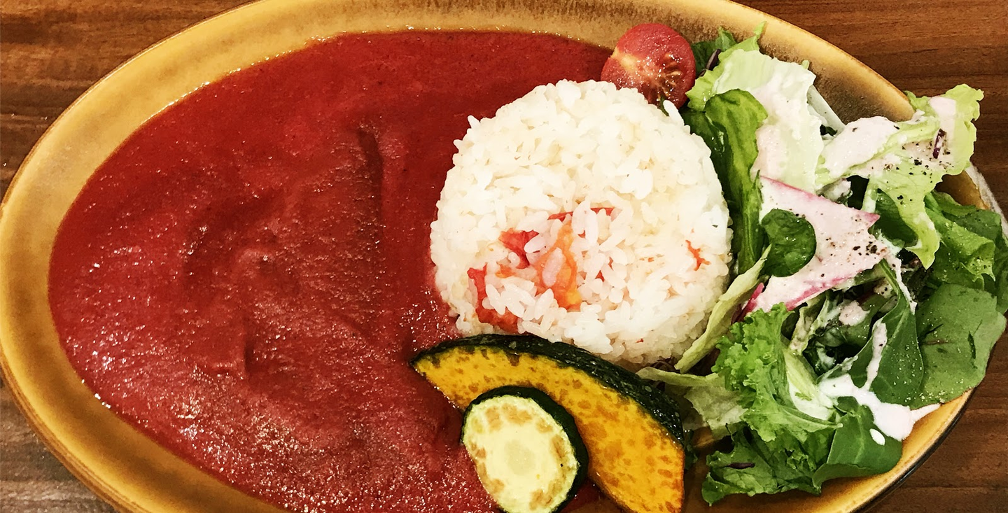 ビーツの赤色でとても鮮やかなカレールーが目を引きます。