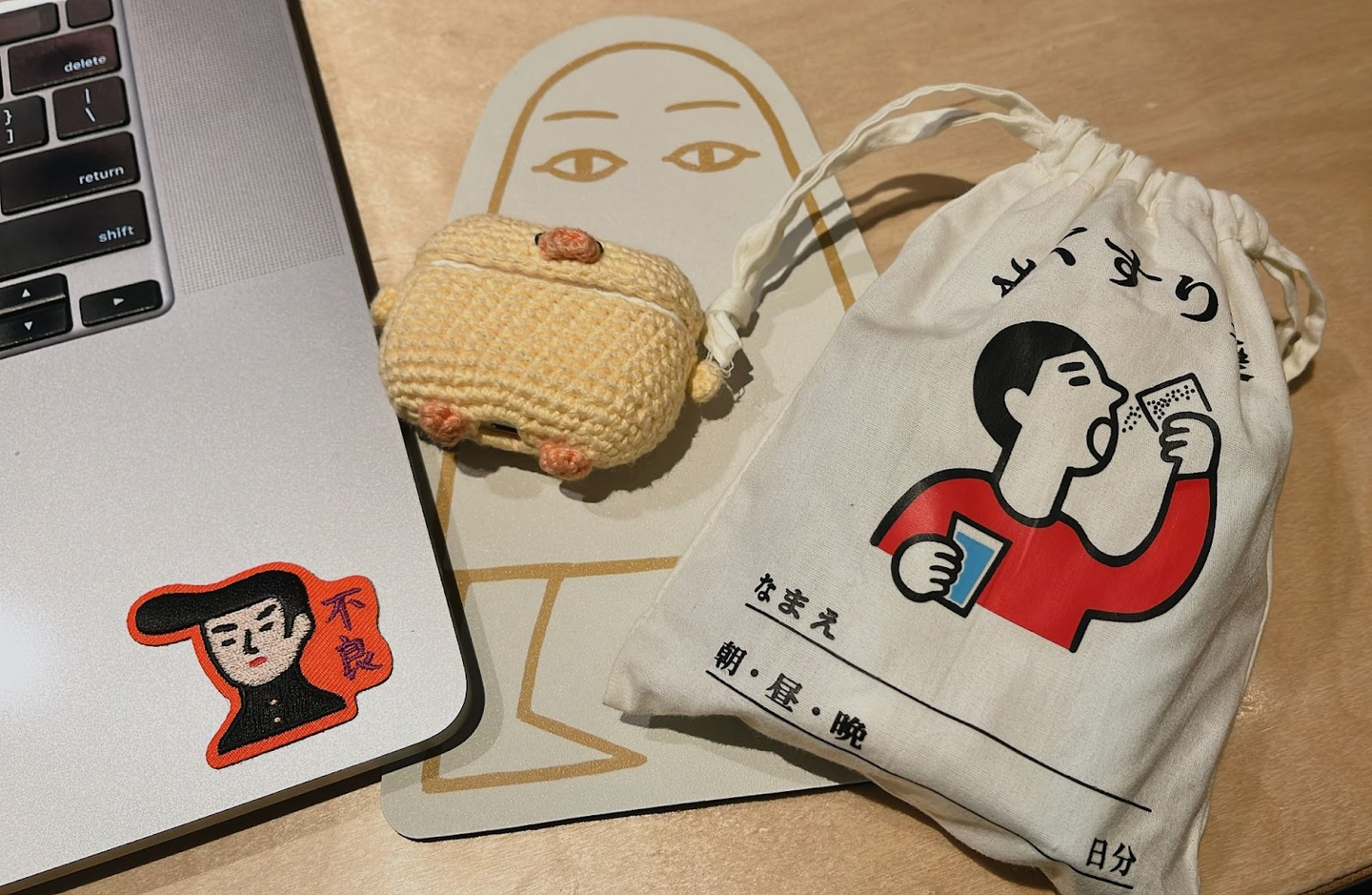 最近の新メンバーはPCに貼ってある「不良くん」の刺繍シールです。