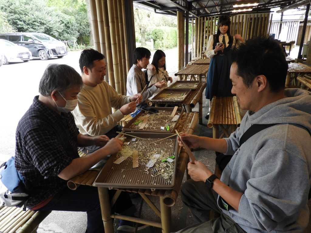 竹林を散策した後、竹灯り作りか竹箸作りのグループに分かれて、竹工作体験を行いました。