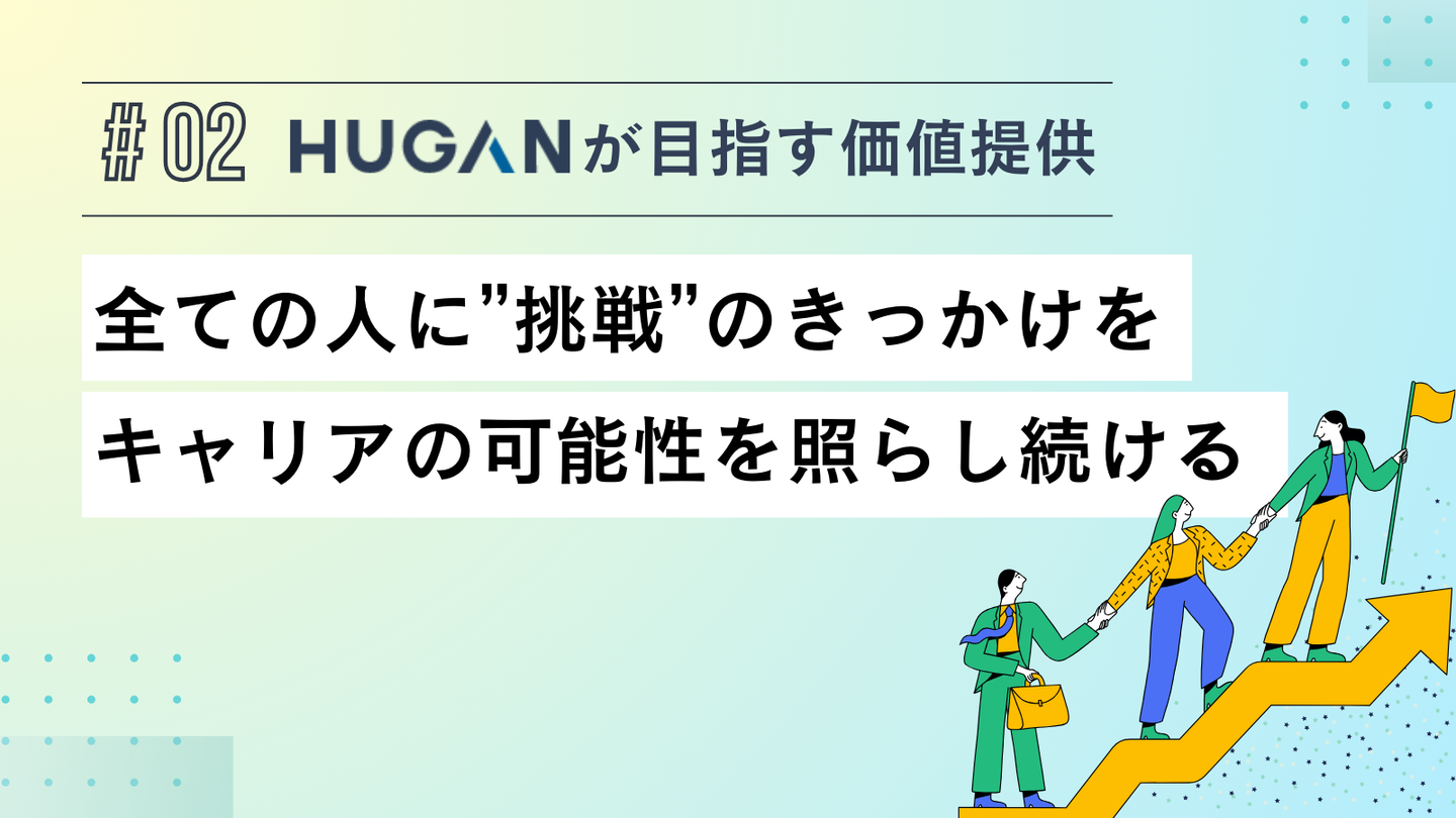 「HUGAN」を通じて全ての人に”挑戦”のきっかけを提供し、キャリアの可能性を照らし続ける。