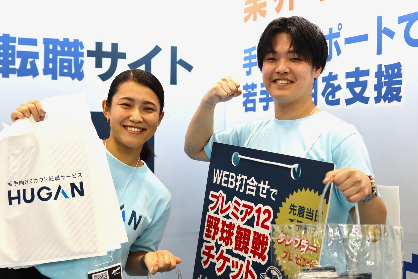 今回のイベントのミッションは『より多くの企業と接点を持ち、挑戦する人が活躍できるフィールドを更に広げる』ことです。来場された企業担当者にHUGANの魅力を伝え、名刺交換や商談機会の獲得を目指しました。