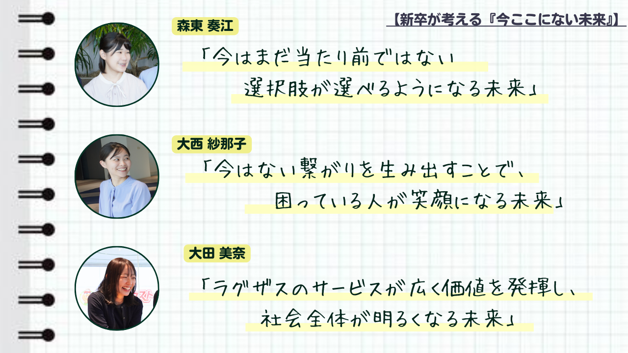 ーラグザスは「今ここにない未来を創り出す」というミッションを掲げていますが、皆さんにとっての「今ここにない未来」とは?