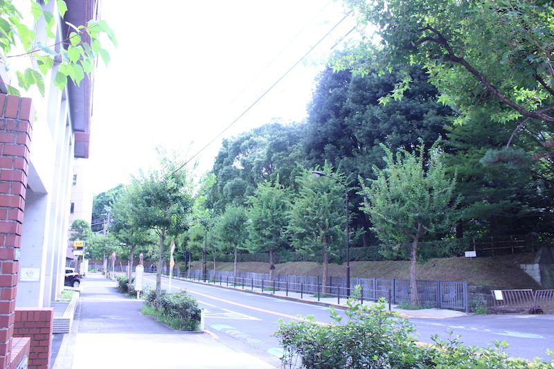 入居する建物(TTS元赤坂ビル)の正面には赤坂御所(の裏門)があり、たくさんの緑が広がっています。夏はセミの声や、よく耳を澄ますと鳥の声もよく聞こえます。秋から冬にかけては、紅葉も楽しめます。
