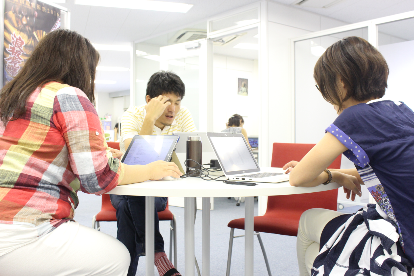 この写真を撮影した日は、ちょっと人が多い感じですね。スタッフの出張や外出が重なると、この半分以下ぐらいしか人がいないこともよくあります。