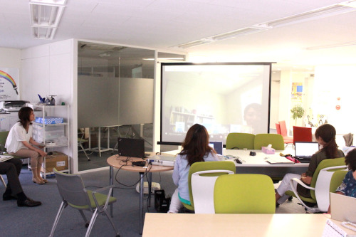 ちなみに月に1回、「Googleハングアウト」で全拠点を結んで開催される社内の全体会議のようすはこんなかんじ。↓ 拠点にいるメンバーとも、顔を見ながらいろいろなコミュニケーションを行っています。