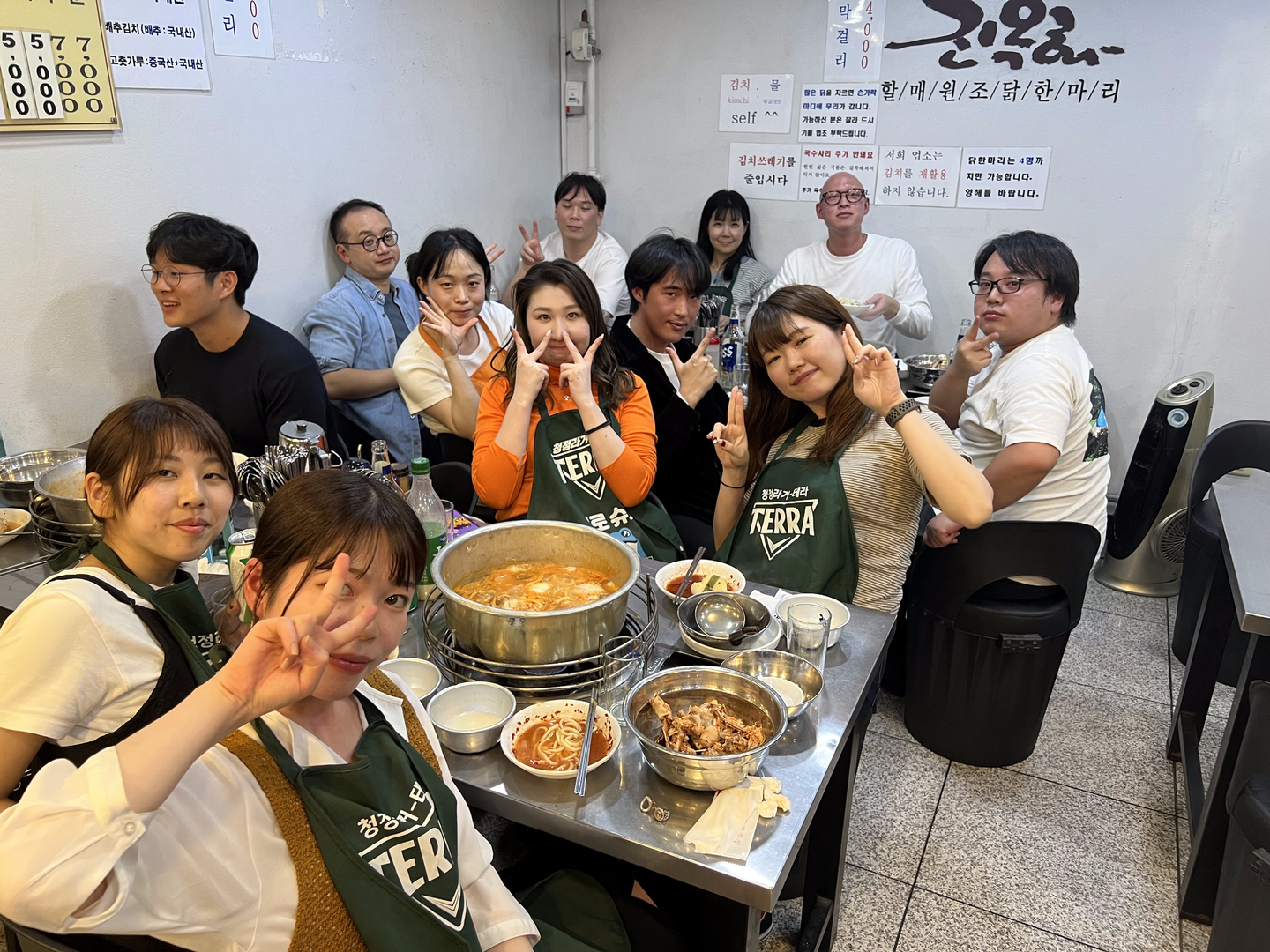 かなりの人気店なので、ディズニーレベル(1時間以上・・・)で待ちましたが、待ってよかったと思えるほどの美味しさでした。ビールがよく合います。この間入社したばかりの方や、普段関わる機会がなかなかない方ともタッカンマリを囲んで楽しく会話できました。