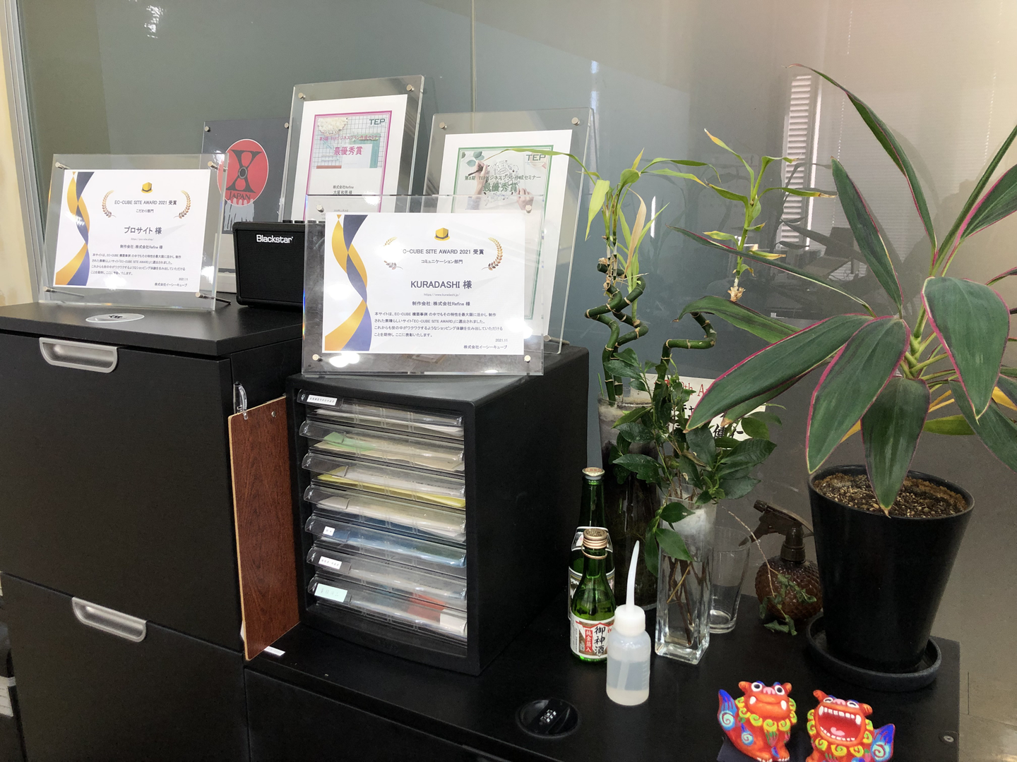 そして、今まで受賞してきた賞たちも!社長の私物「X JAPAN」の盾も見えますね🎸