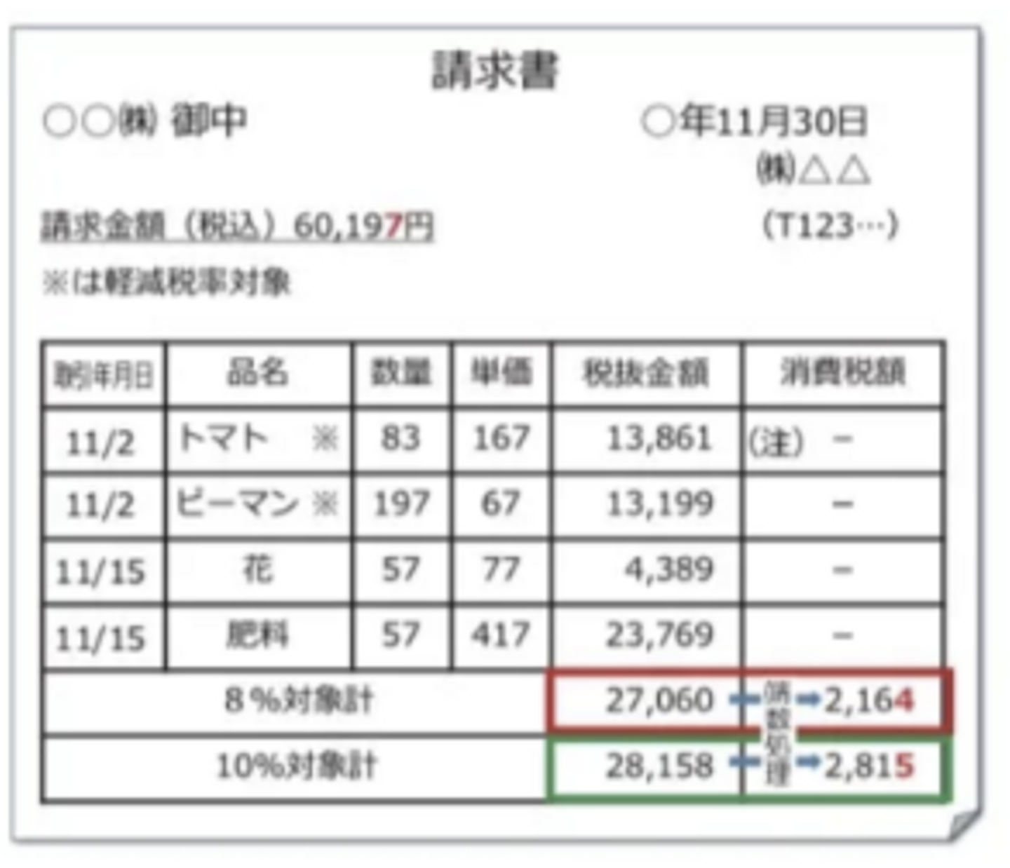 - 適用税率と消費税額の記載条件