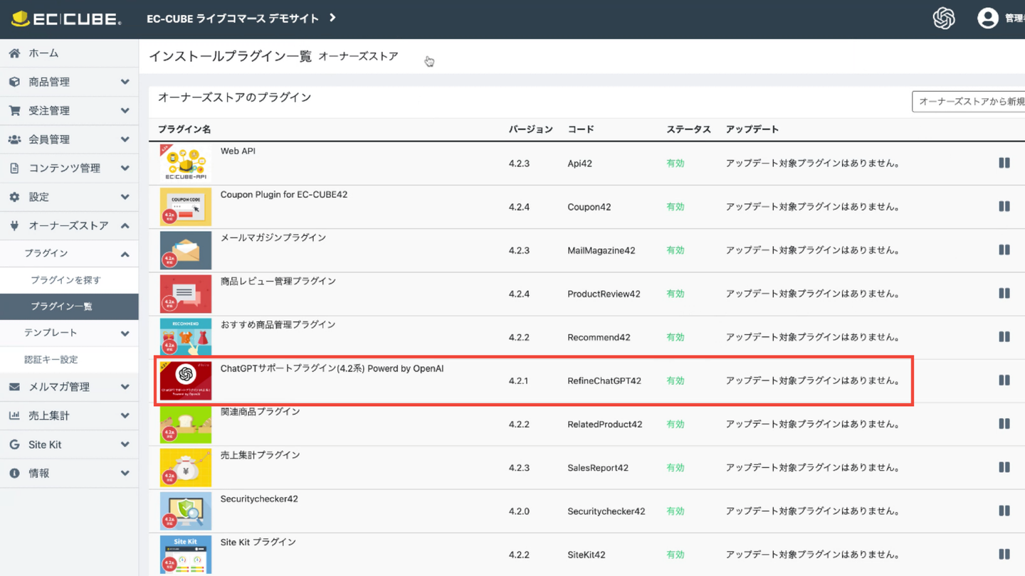 あと、EC-CUBEはオープンソースなので、カスタマイズの方法やプラグインがインストールできない事案もよく発生しますが、そういう時に"ChatGPT"にサクッと質問できます。他の画面に遷移せず、そのまま管理画面上で使えるという点がメリットなので、是非ご活用いただけたらと思います!