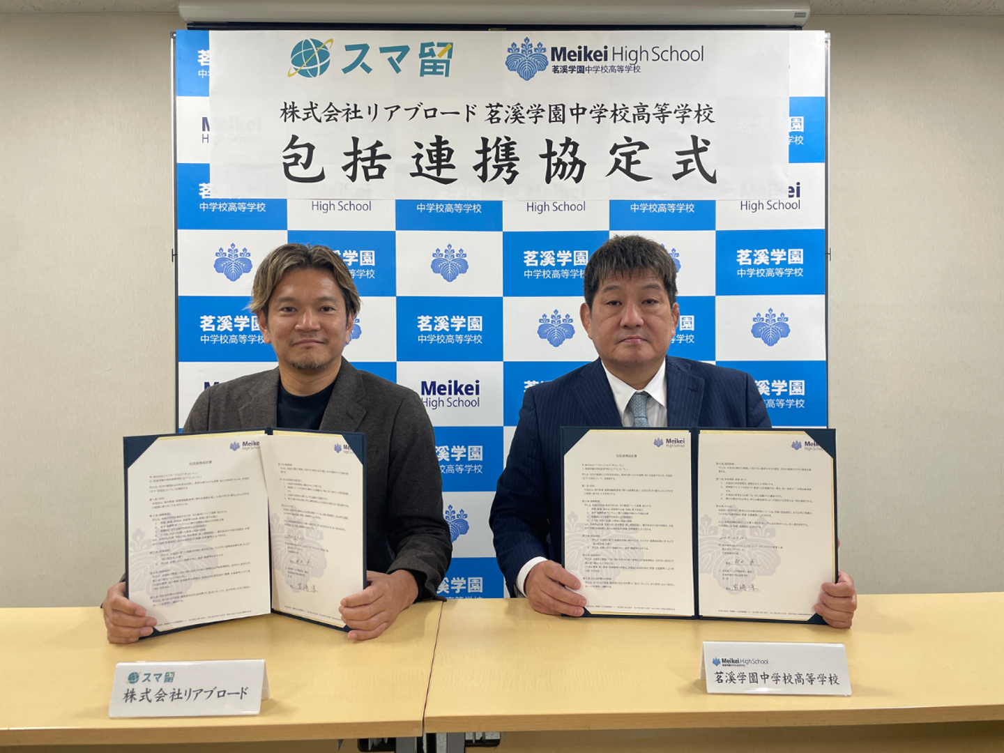 学校法人茗溪学園 茗溪学園中学校高等学校(所在地:茨城県つくば市)と、海外留学支援サービス「スマ留」を運営する株式会社リアブロード(本社:東京都渋谷区)は、2025年12月10日(水)に包括連携協定を締結しました。