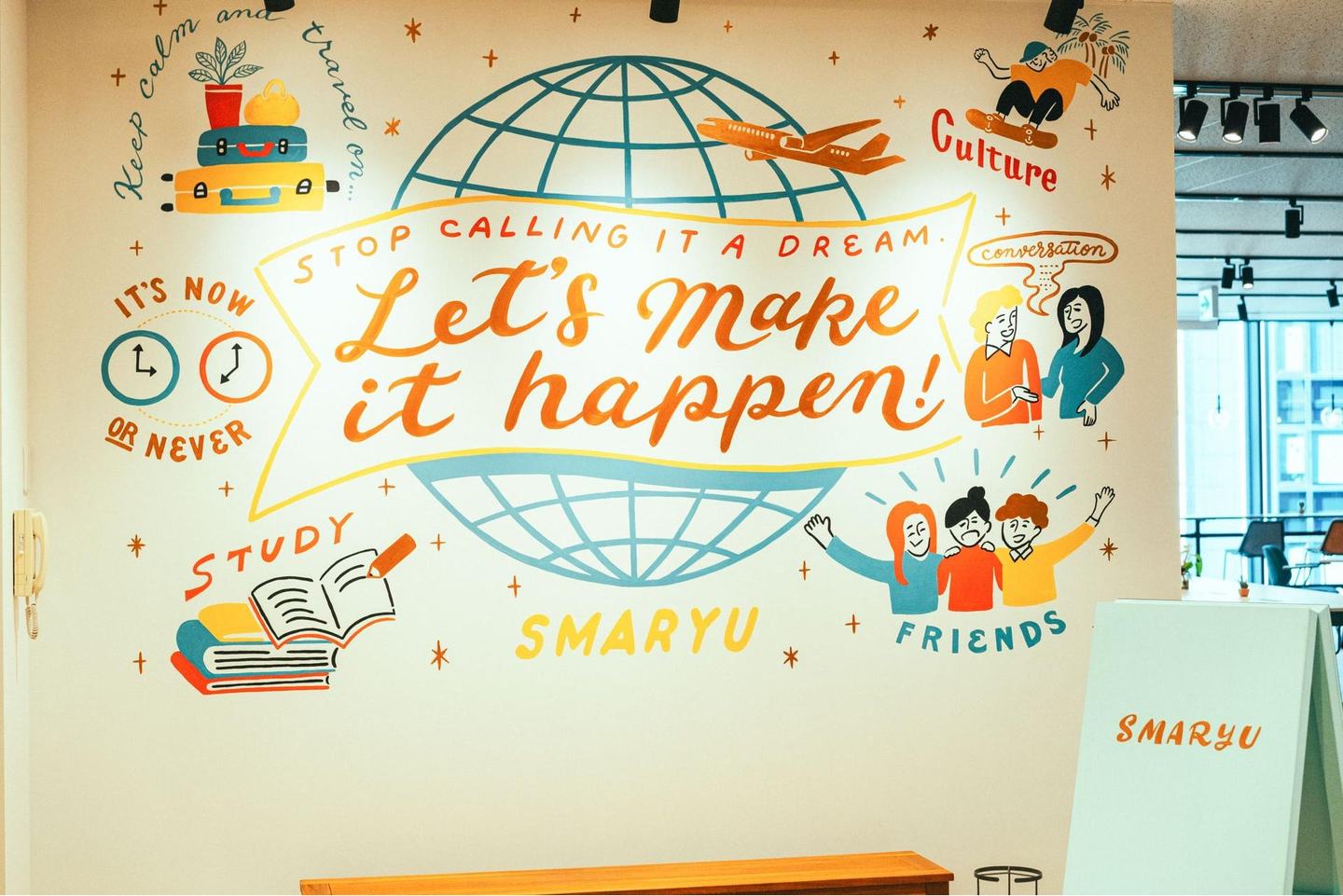 2.これから留学へ挑戦する方を応援するカラフルな手描きアート