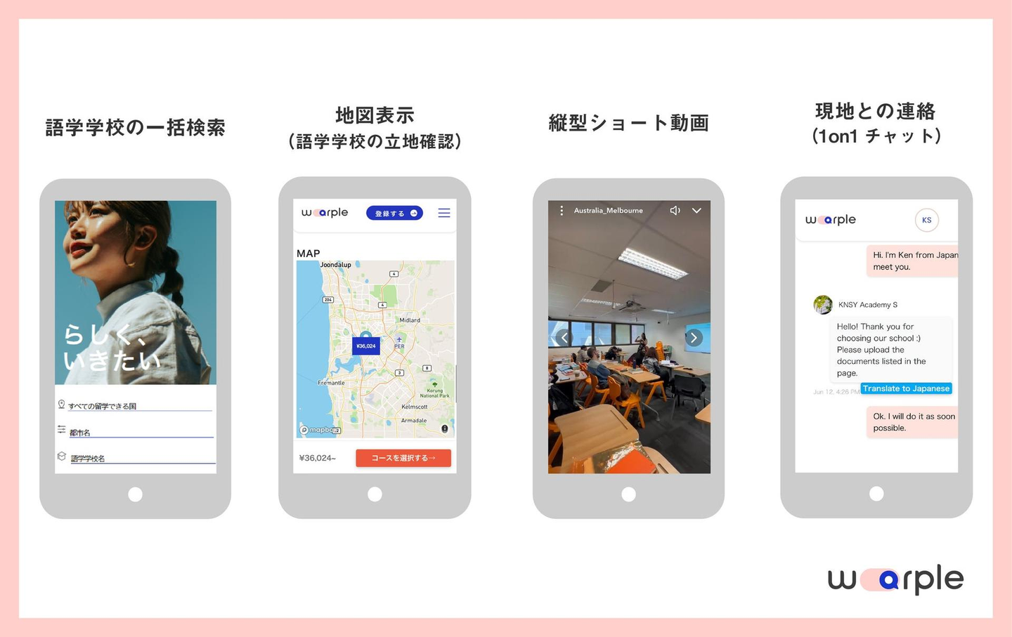 - 海外旅行のように気軽に留学を手配できる『warple』サービス概要