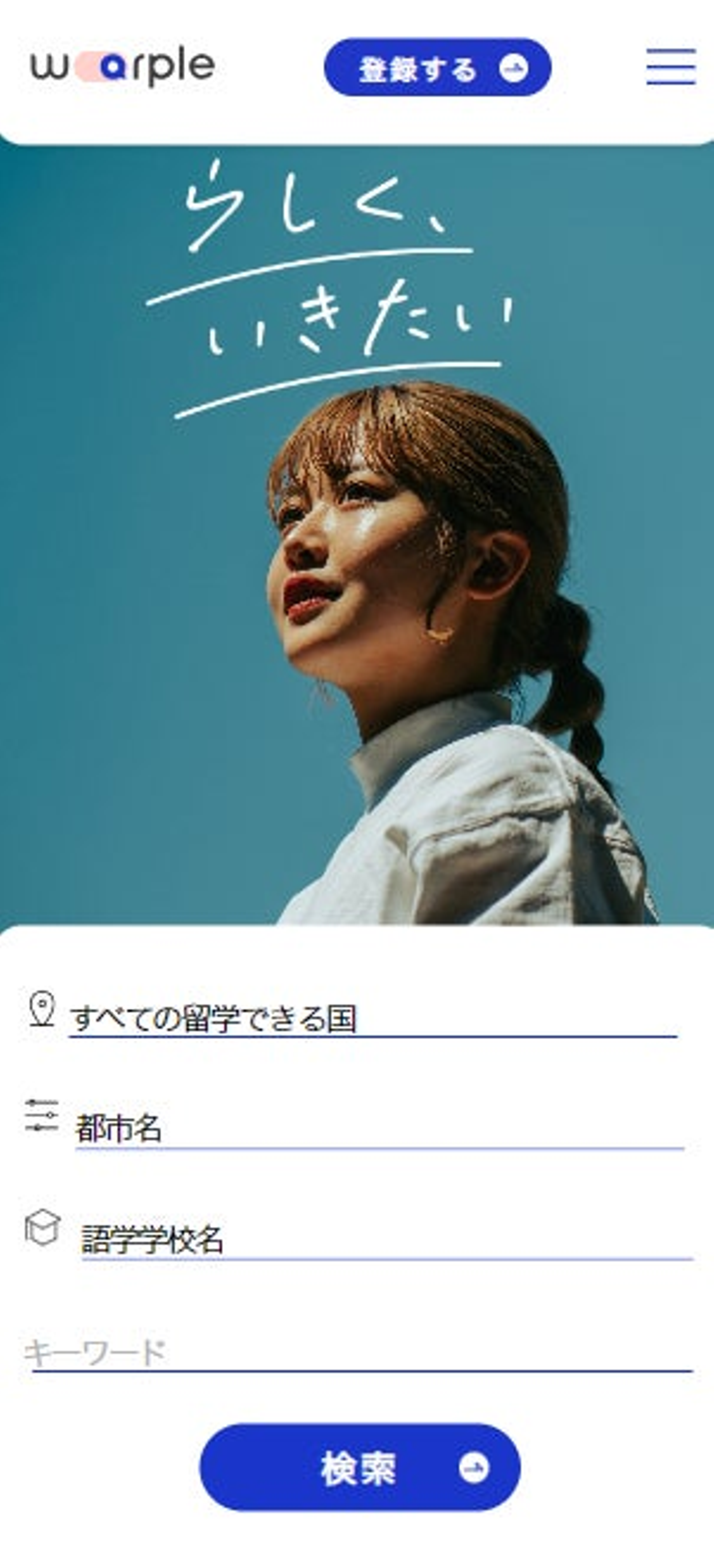 『warple』は、語学学校/プログラムの検索や申込み、 渡航までの準備や学校/宿泊先の手配まで 留学に必要なすべてをインターネット上で完結させることにより、 どこよりも安く、どこよりもあなたらしく、留学が実現できるサービスです。