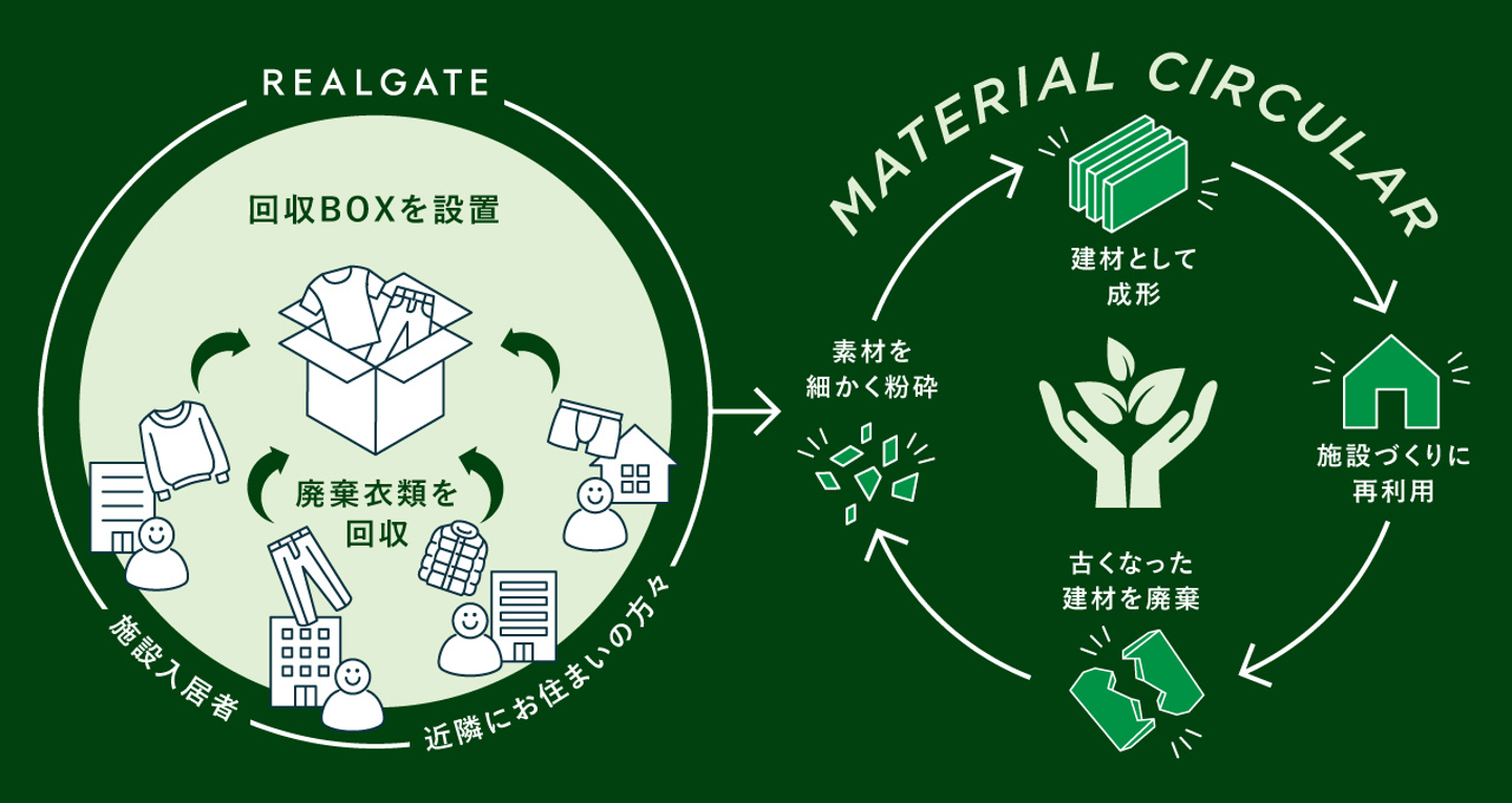 今後、衣料品回収BOXはリアルゲイトが運営管理する施設にも順次設置を予定しており、この取組みを自社だけで終わらせることなく、運営管理する施設に入居する約1,200社の入居者を巻き込みながら、入居者がオフィスという身近なところから環境配慮への意識を高めるきっかけをつくり、入居者個々のライフスタイルに変化をもたらしていきます。