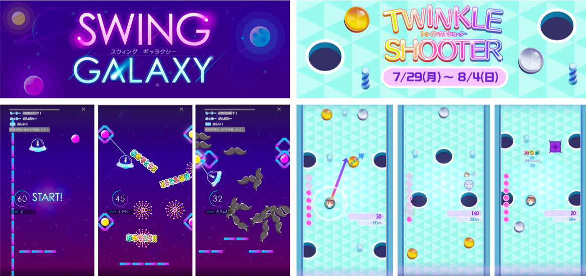 今月(2019年7月)、「SWING GALAXY」と「TWINKLE SHOOTER」というゲームを公開しました。