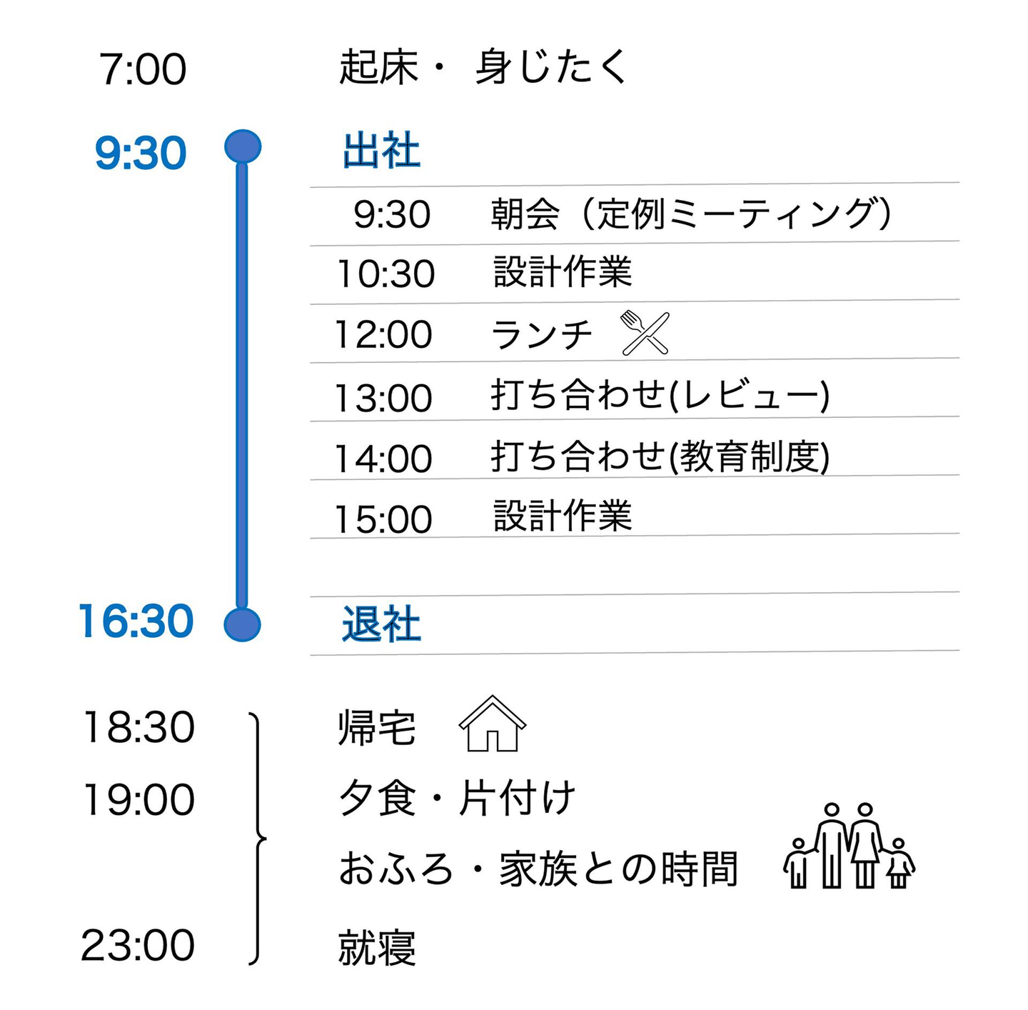 私にとって「仕事と育児の両立」とは、朝起きる時間や寝る時間、食事の時間、そして働く時間を自分の中で無理なく調整できるということです。自分と家族の無理ない範囲で両方できること。今はそれができていると思います。夫婦で協力して家事育児に取り組めていて、仕事に於いても自分のやるべきことに集中しています。