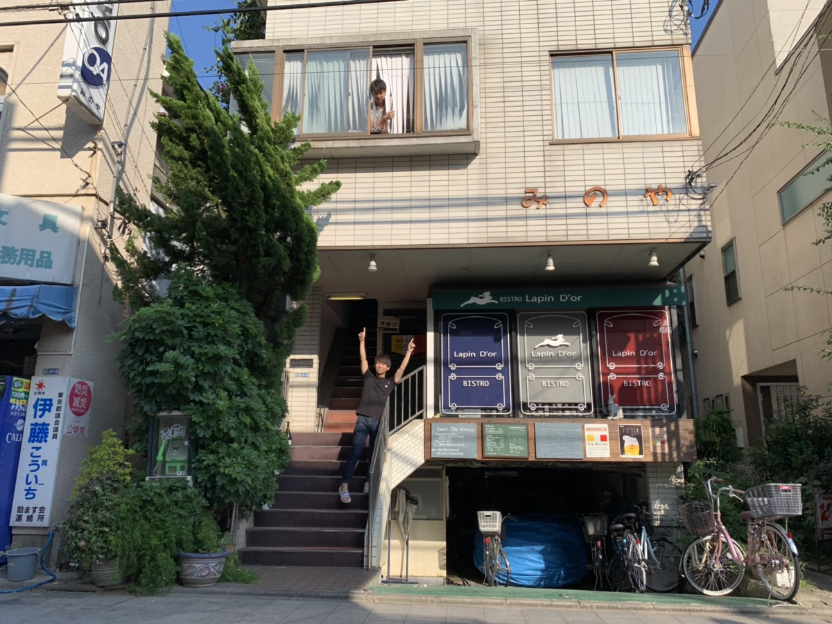 僕が立っている階段を上がって、2階のドアを開ければ到着です。