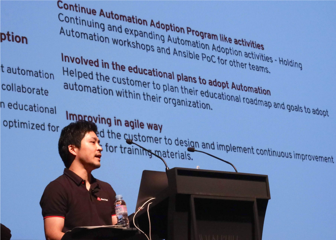 昨年、Tech ExchangeというRed Hatのアジア太平洋地域(APAC)の技術者が集まるセッションの場で、実際に自分が携わった案件のカスタマージャーニーについて英語でプレゼンをする機会をもらいました。