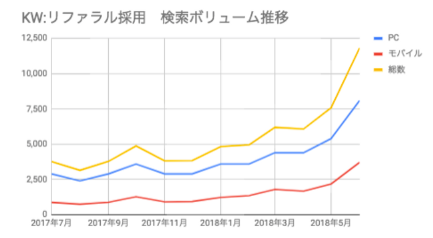 ところで、「リファラル採用」のネットでの検索数を昨年と比較するとなんと約4倍になっています。