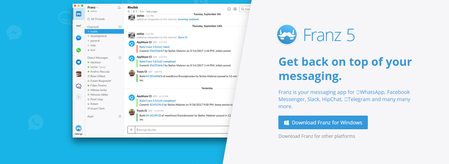 Free, Open Source and Cross Platform messaging and emailing app that combines common web applications into one.
