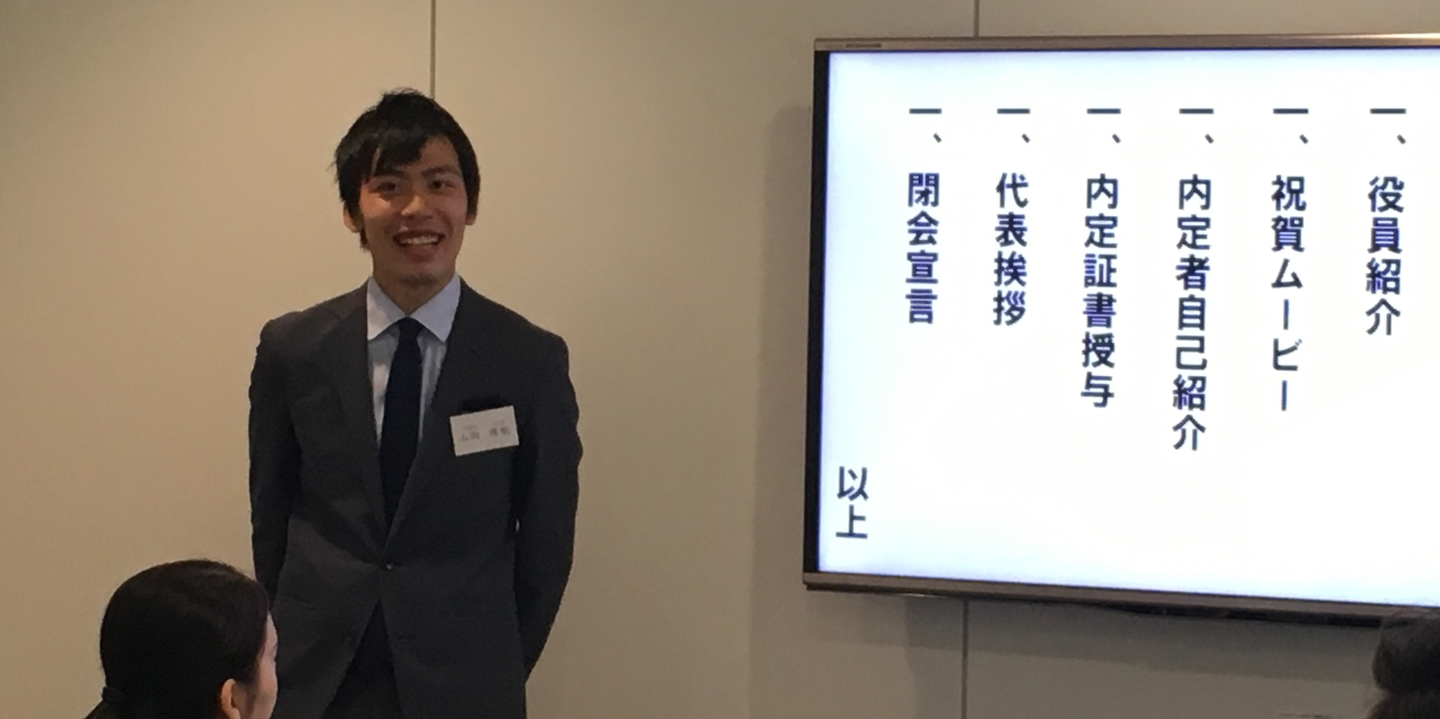 代表含め役員陣も参加した内定式。