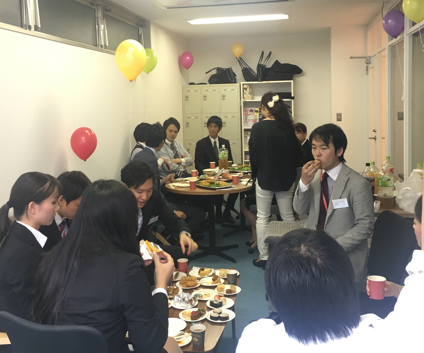 場所を休憩室に移し、実際に現場で働く先輩社員と懇親会を実施♪