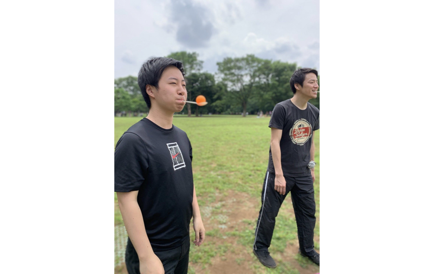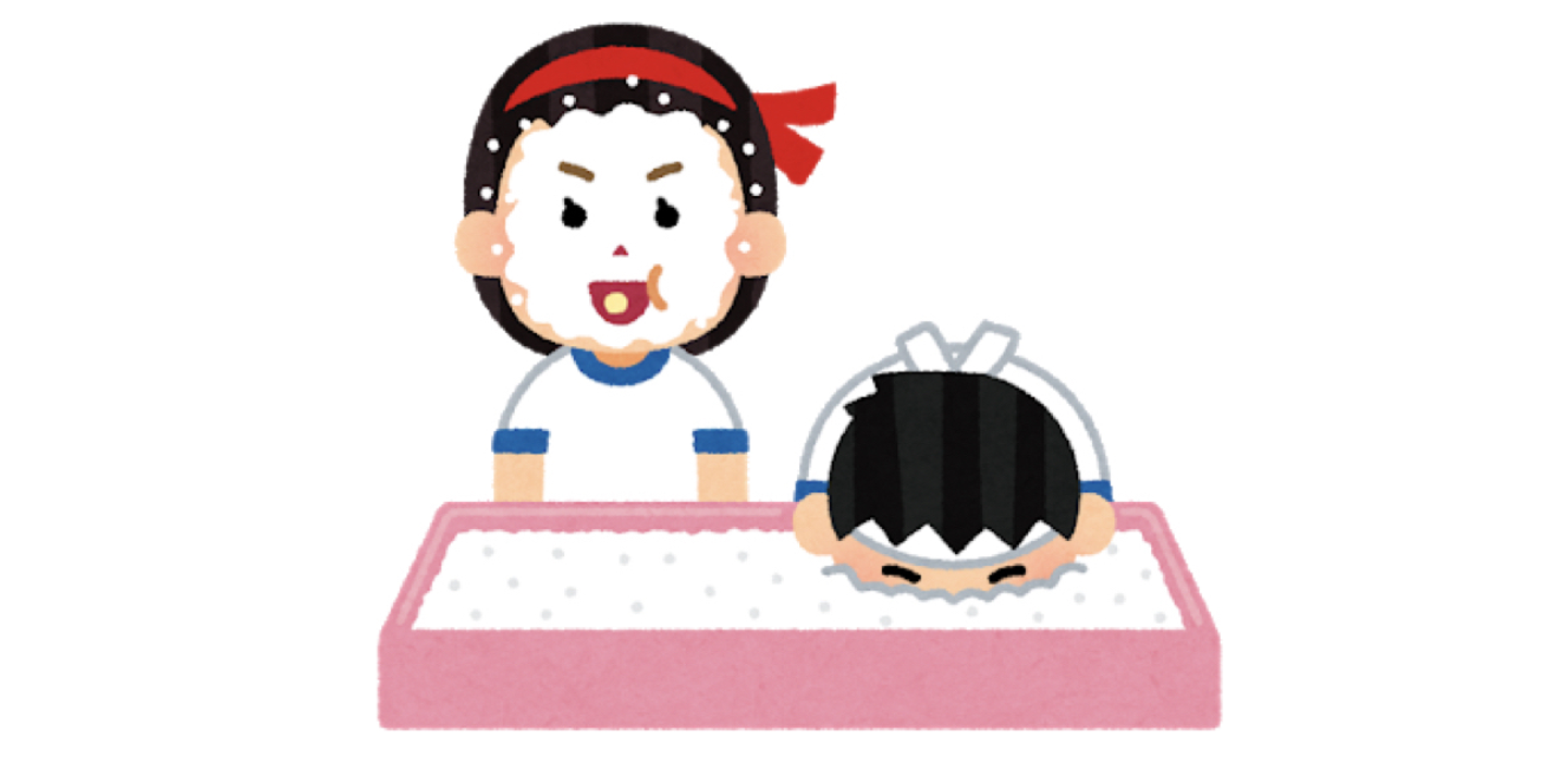 これは「アメ玉競争」での金の知恵。「粉の中に紛れたアメ玉を、口だけで探してくわえながら走る」という定番競技ですが、プレで実践してみてわかったのが、