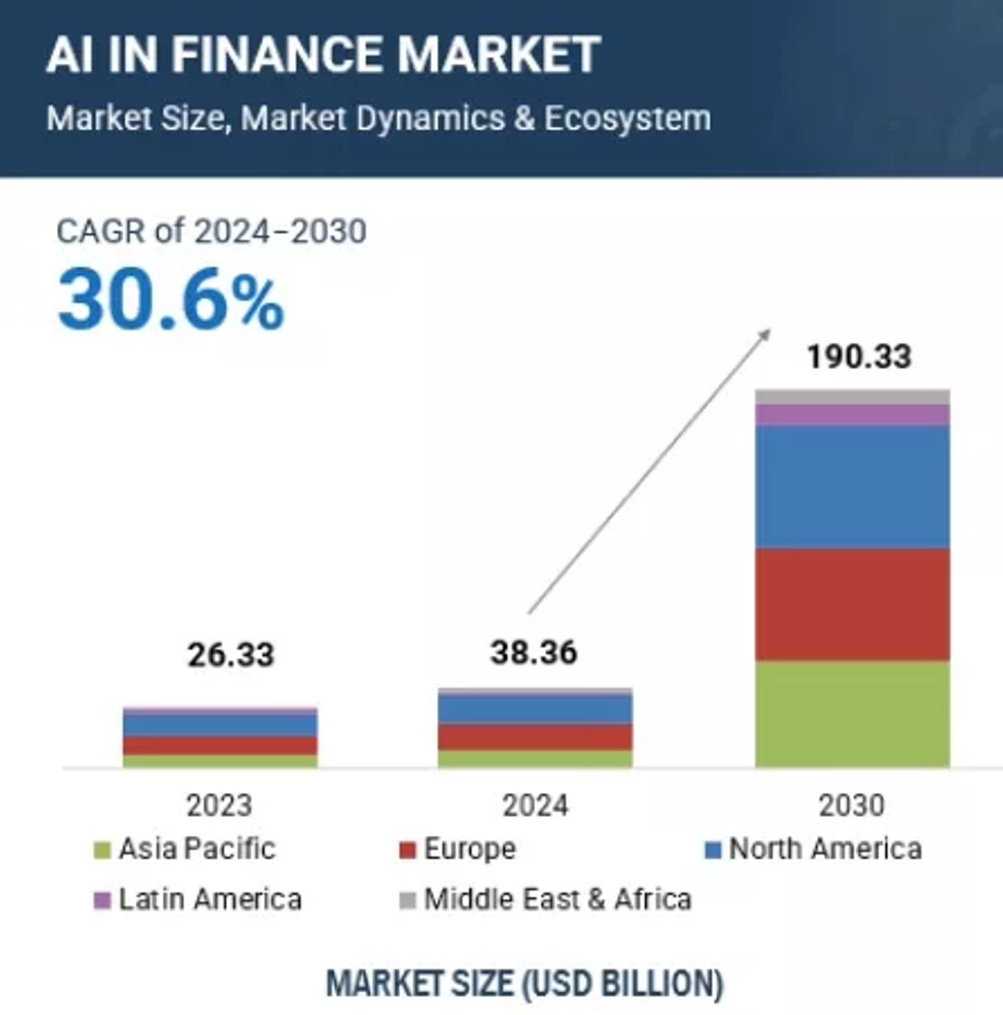 AIの発展は、第4次産業革命においてあらゆる分野に大きな影響を与えており、金融、とりわけ株式投資活動にも深い変革をもたらしています。MarketsandMarketsの調査によると、グローバルな金融分野におけるAI市場は2024年に383.6億米ドルと推定され、2030年には1,903.3億米ドルに達すると予測されています。