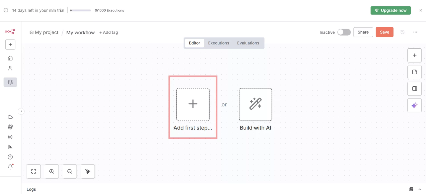 これでn8nの環境準備は完了です。次は、実際のワークフローを作成してみましょう。