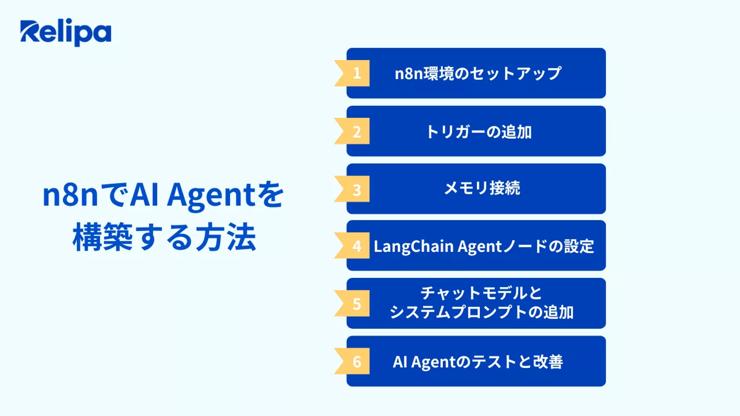 最初のn8n AI Agentの構築は、ステップごとに分解すれば意外とシンプルです。ここでは、ゼロから実際に動作するAI Agentを一緒に作っていきましょう。