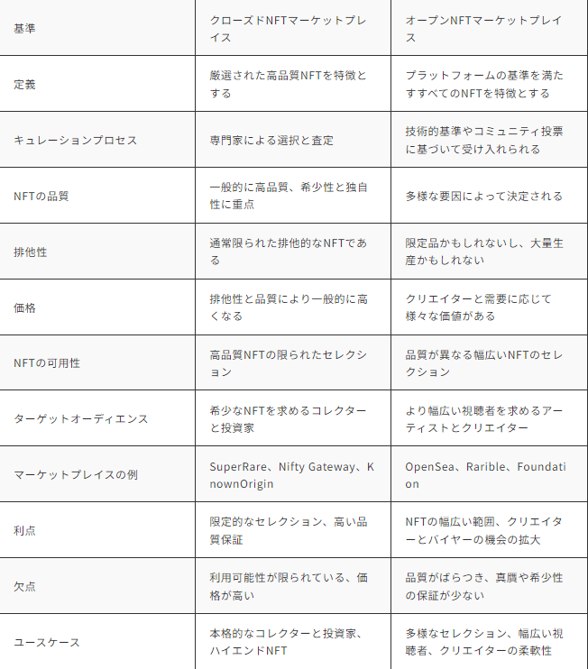 クローズドNFTマーケットプレイスとオープンNFTマーケットプレイス の違い