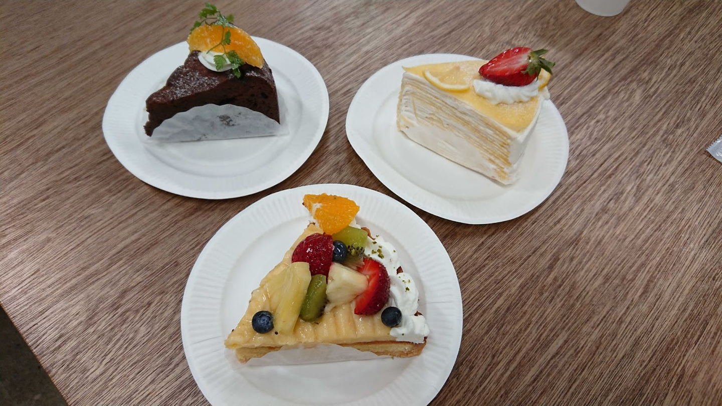 最後はわたくし川口が、メンバーの誕生日祝いに持参したケーキをご紹介します!浅草と押上の真ん中にできた複合商業施設「東京ミズマチ」にあるカフェダイニング LAND_Aさんのもの。どれも可愛いだけでなく、ボリュームもたっぷりで美味しかったです。