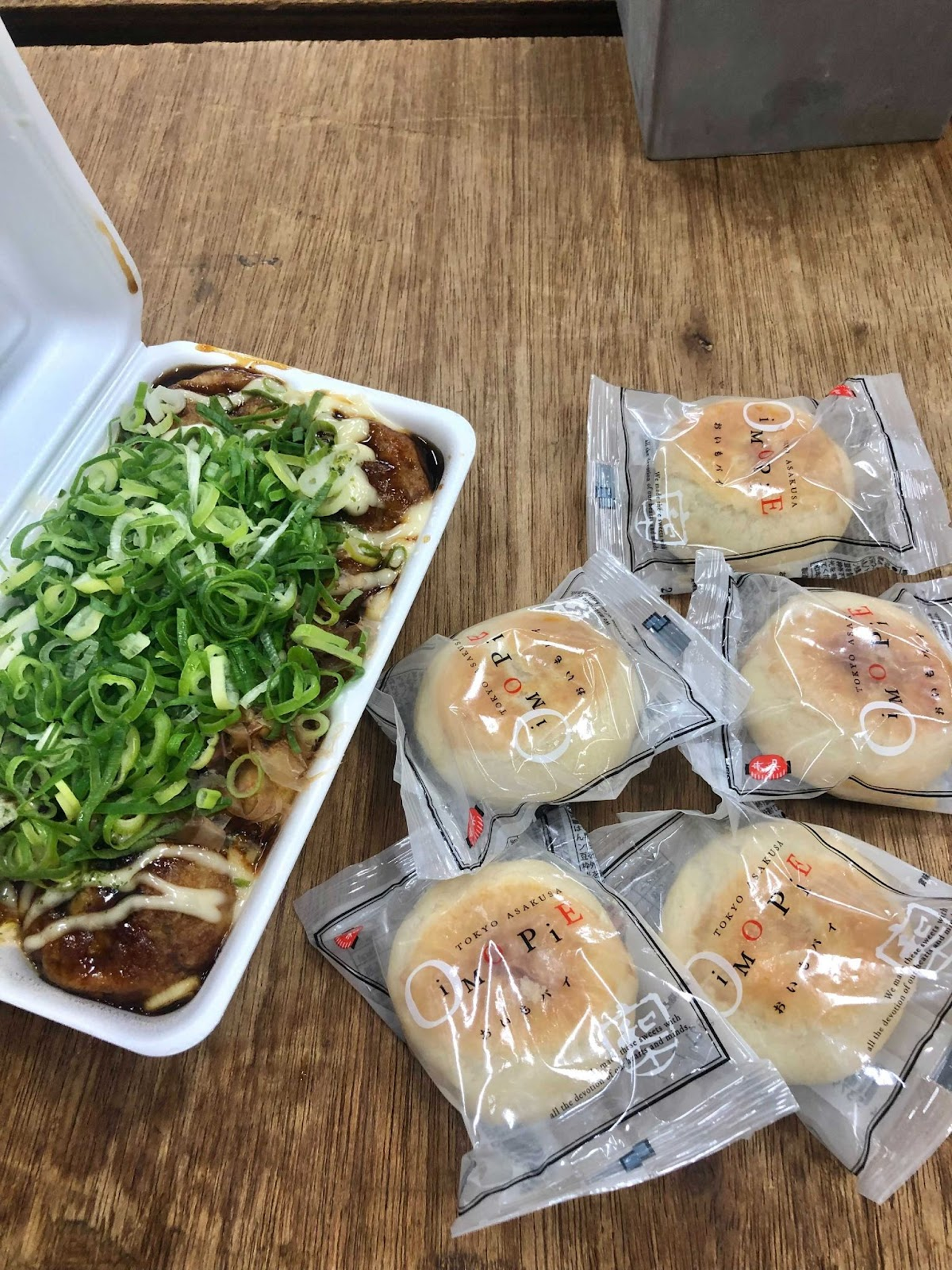 全国に店舗がある舟和さんですが、何を隠そう本店は浅草なんです。有給で浅草に遊びにきたメンバーが、駅前で購入したタコ焼きとともにおいもパイを差し入れてくれました。
