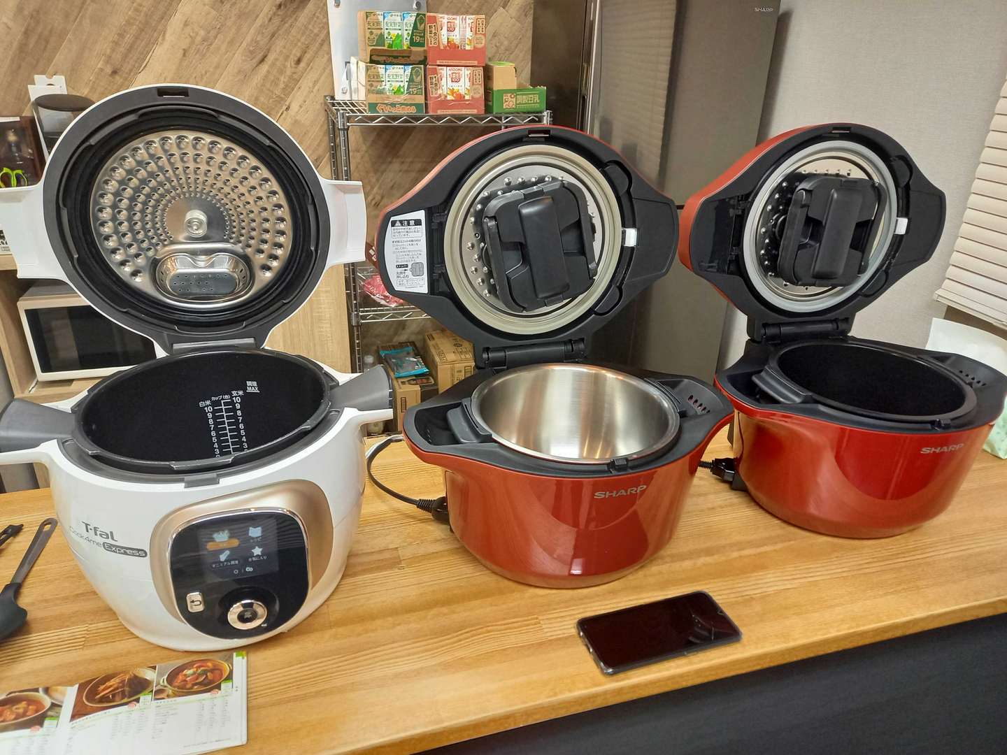 左から「クックフォーミー エクスプレス」「ホットクック KN-HW24E」「ホットクック KN-HW24F」