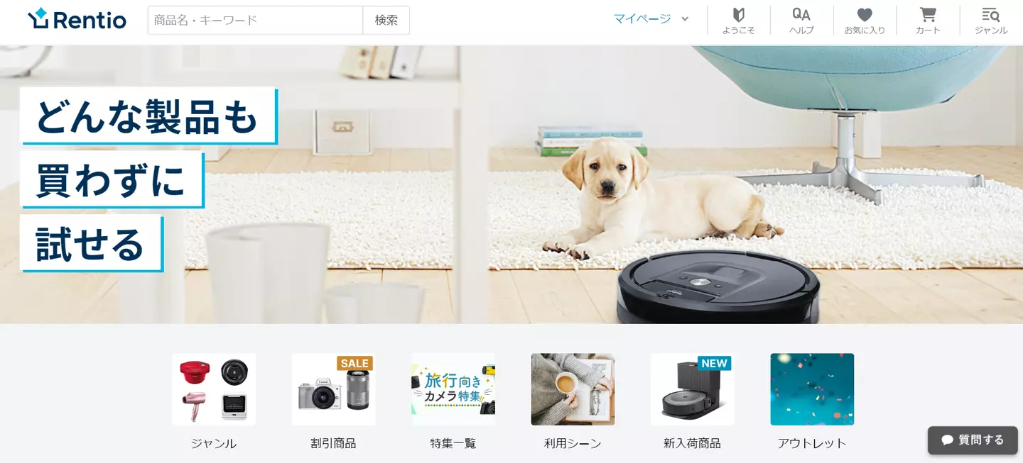 弊社はカメラやロボット掃除機、美容家電など家電をカンタンにレンタル・購入できるサイト「レンティオ」を運営しています。https://www.rentio.jp/