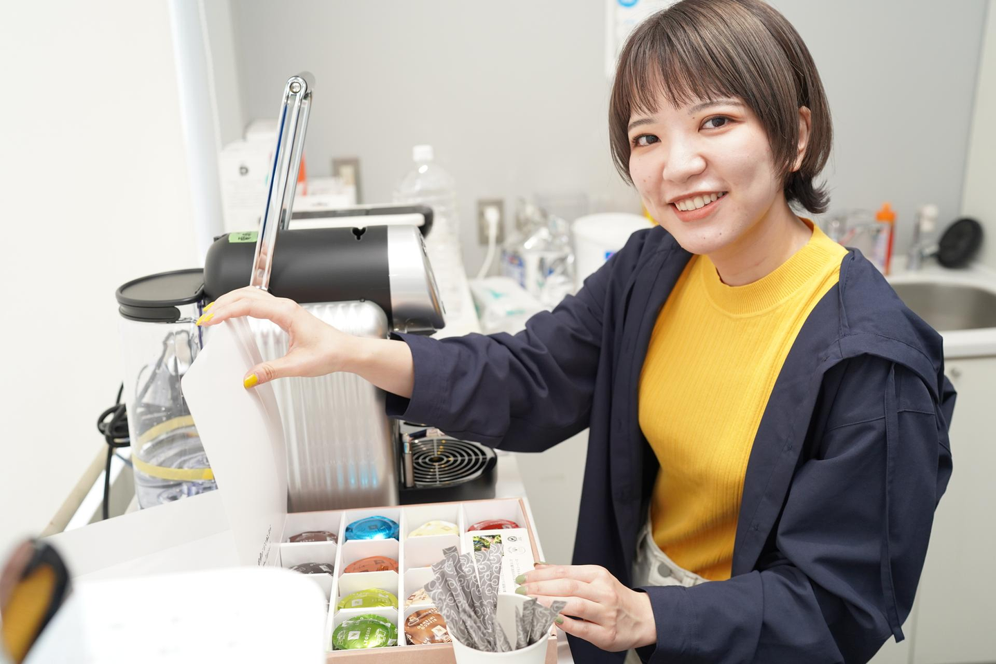 お弁当を持ってきていることが多いですね。今日は社内に設置されているコーヒーメーカーを使って、コーヒーも頂いちゃいます♪ どれにしようかな~。