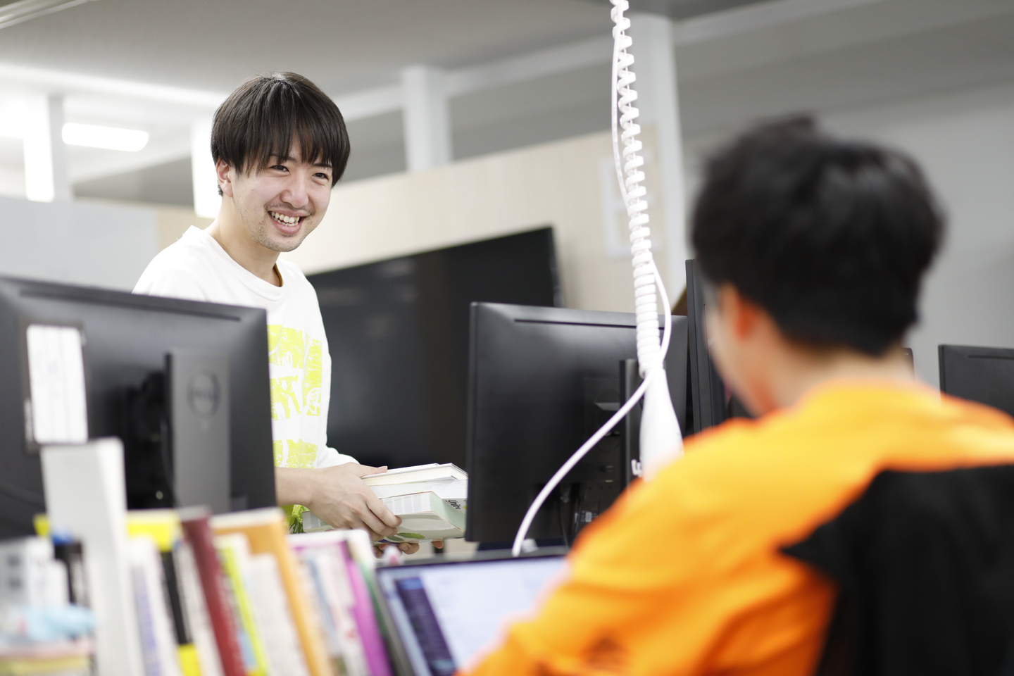▲業務中も笑顔を絶やさない林。人懐っこいキャラクターは仕事にも活きている