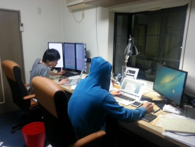 ▲起業後まもなく、手探りで仕事をしていた頃(写真:左奥が山下)