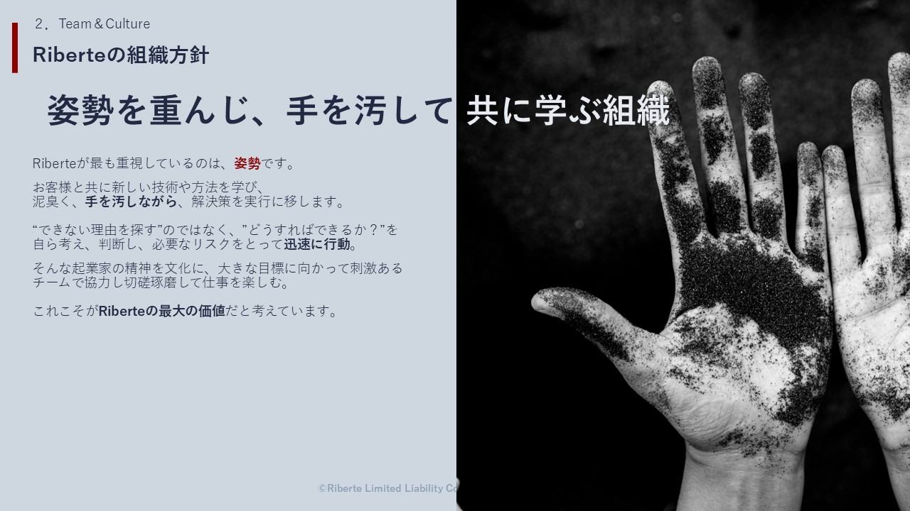 Riberteの組織方針である「できない理由を探すのではなく、どうすればできるか?」の考えに基づき、
