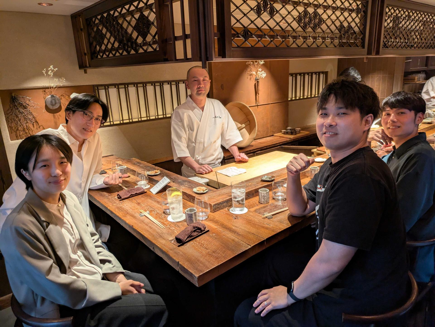 場所は、代表選りすぐりのお寿司屋。職人が目の前で一貫ずつ丁寧に握るお寿司は、ネタの良さはもちろんのこと、細やかな仕事ぶりが光る逸品でした。それぞれのネタに合わせて供される日本酒との組み合わせもまた格別で、参加者一同、質の高い食体験を堪能しました。