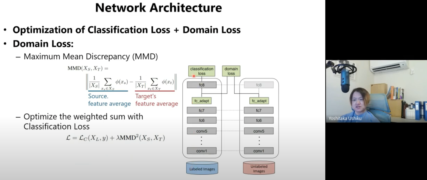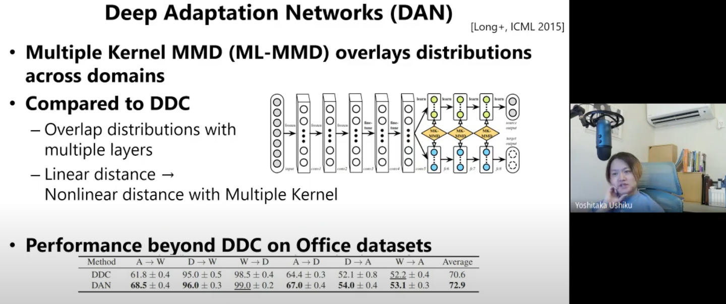 上記のような疑似ラベルを使った手法の他に、生成モデルを使った「Deep Domain Confusion (DDC)」や「Deep Adaption Networks (DAN)」についても紹介頂きました。