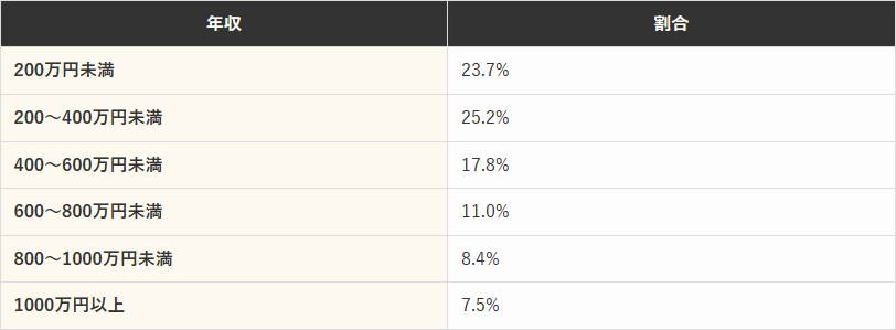 さらに1000万円を超える人も7.5%いて、13人に1人はしっかり稼いでいる計算になります。